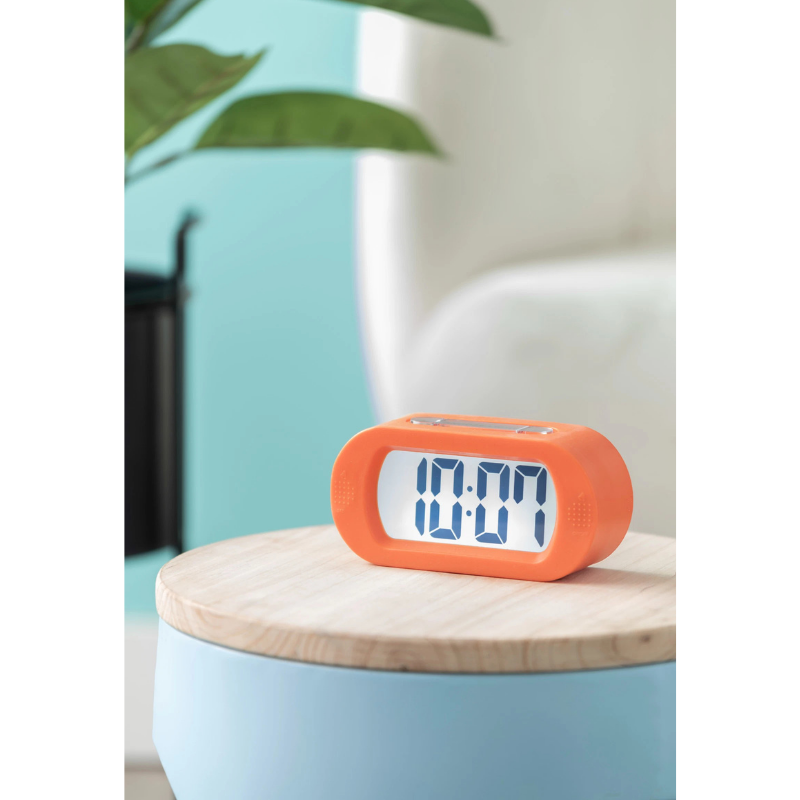 Karlsson Digitale Gummy Alarm Clock – Rubberized Wekker – Oranje – 14x7x5 cm