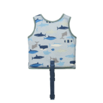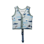 Het zachte materiaal voelt prettig aan op de huid en is lichtgewicht, waardoor kinderen comfortabel kunnen zwemmen en spelen. Het vest droogt snel en is eenvoudig schoon te maken. Dankzij het vrolijke Shark / Dove blue-design wordt zwemmen nog leuker en speelser.