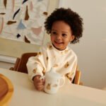 De Liewood Merle Cape Bib is lichtgewicht en zacht, waardoor hij comfortabel zit tijdens het eten. De elastische manchetten sluiten goed aan rond de polsen en houden mouwen schoon.