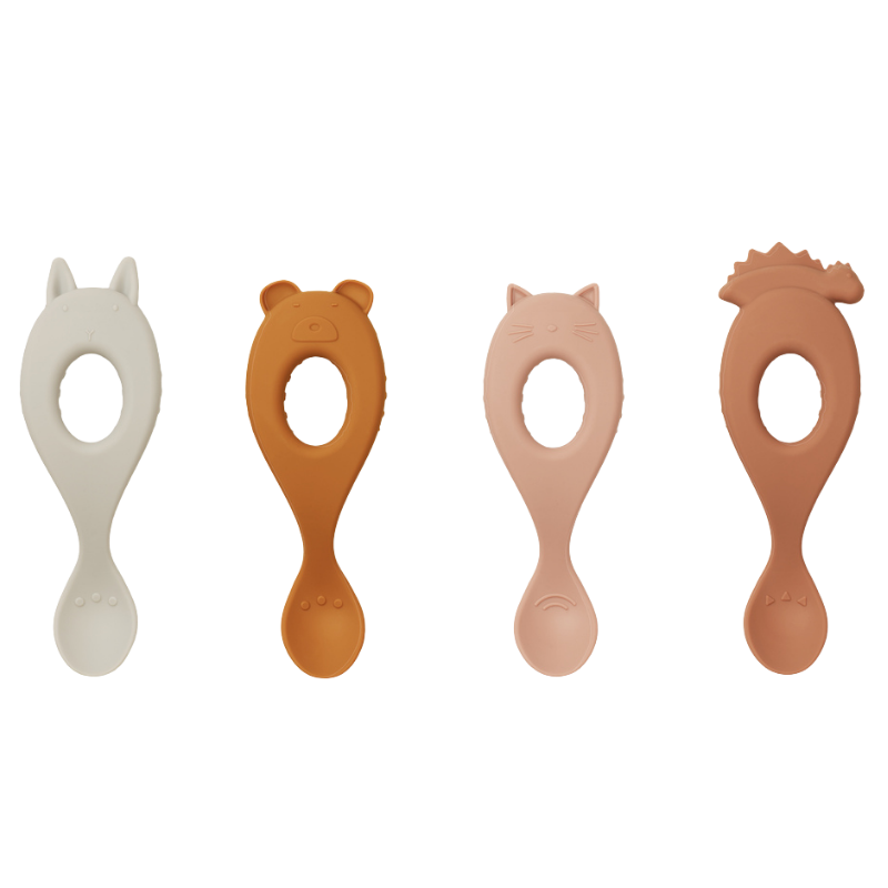 De Liewood Liva Silicone Spoon set bestaat uit 4 lepeltjes met speelse dierendetails. Ze zijn gemaakt van 100% voedselveilige siliconen en ontworpen voor dagelijks gebruik. De lepels zijn vaatwasmachinebestendig en eenvoudig schoon te maken, ideaal voor drukke gezinnen.