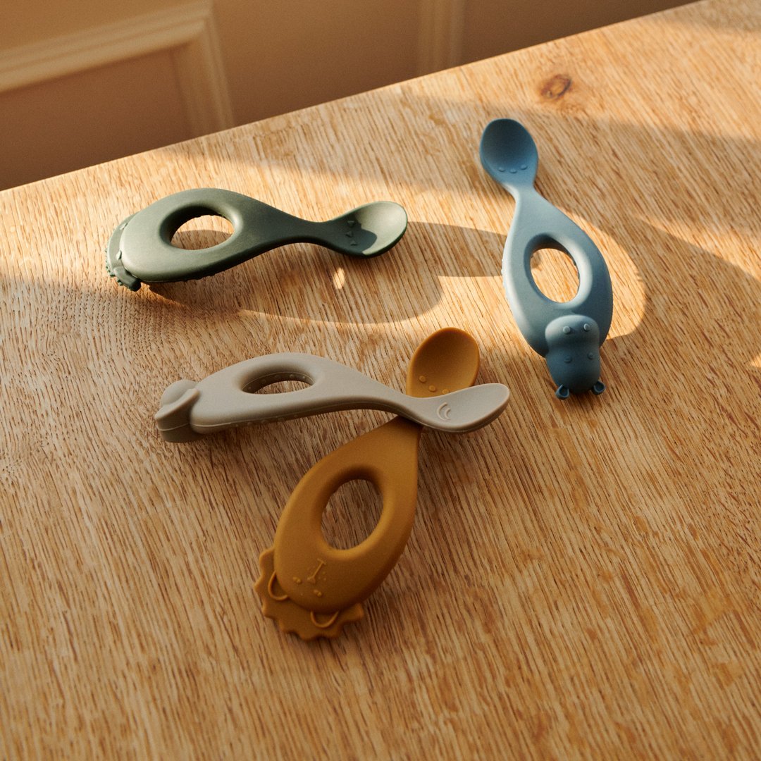 Liewood Liva Silicone Spoon – Babylepel Set – 4-Pack – Safari/blue multi mix