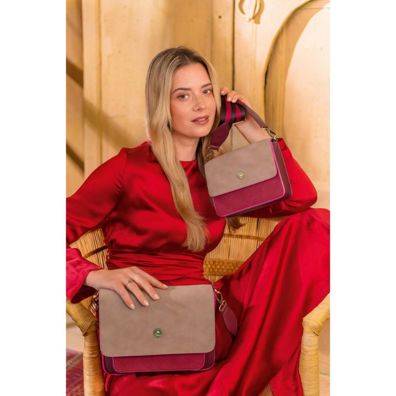 De Fenna crossbody tas is vervaardigd uit een hoogwaardige combinatie van veganistisch leer en polyester, afgewerkt met zachte vegan suède details. Dit zorgt voor een luxe uitstraling en een aangenaam gevoel bij dagelijks gebruik.