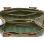 De Fia handtas onderscheidt zich door de karakteristieke Jabali-print, geïnspireerd op sierlijke bloemen en decoratieve patronen. De rijke groene kleur zorgt voor een warme en elegante uitstraling, waardoor deze tas een echte blikvanger is.