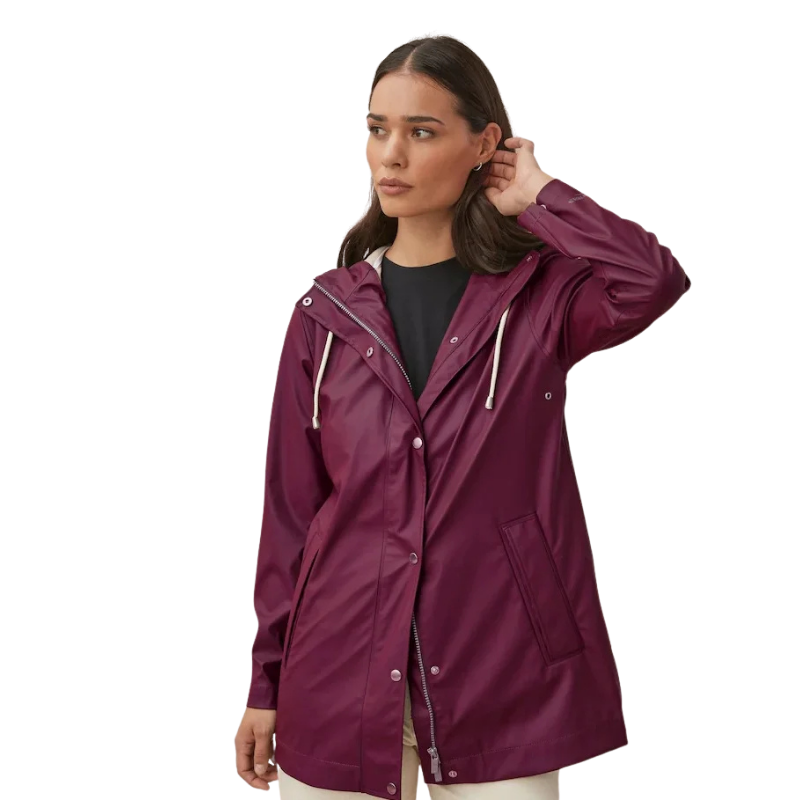 Deze nieuwe, eigentijdse garderobeklassieker is een rechte regenjas van duurzaam, lichtgewicht, waterdicht materiaal met PU-coating en rubber. De jas is vakkundig gemaakt en voorzien van gelaste naden voor volledige bescherming tegen de regen en een achterkant van gerecycled tricot voor comfort. De capuchon met trekkoord in katoenlook en oogjes onder de armen zorgen voor bewegingsvrijheid en comfort bij oncomfortabel weer. Deze kwaliteit biedt bescherming tegen weersinvloeden met een waterdichtheid van 5000 mm.